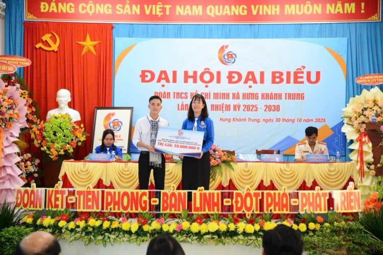 (TVPLVNO) – Thấm nhuần lời dạy của Bác “Đâu cần thanh niên có, đâu khó có thanh niên”, phong trào Đoàn Thanh niên Cộng sản Hồ Chí Minh xã Hưng Khánh Trung (tỉnh Vĩnh Long) – các cấp bộ Đoàn luôn đi đầu trong mọi phong trào Đoàn của địa phương. Hoà chung không khí tuổi trẻ cả nước ra sức thi đua lập thành tích chào mừng Đại hội Đảng các cấp, sáng ngày 30/10/2025, Đại hội Đại biểu Đoàn TNCS Hồ Chí Minh xã Hưng Khánh Trung lần thứ I, nhiệm kỳ 2025 – 2030 đã diễn ra trọng thể tại Hội trường Ủy ban nhân dân xã.
