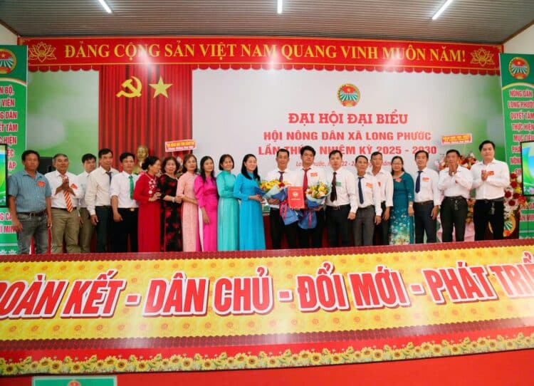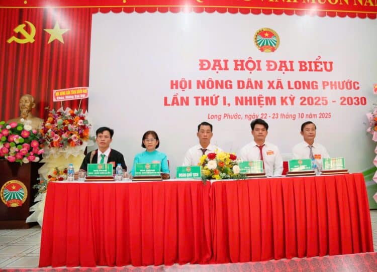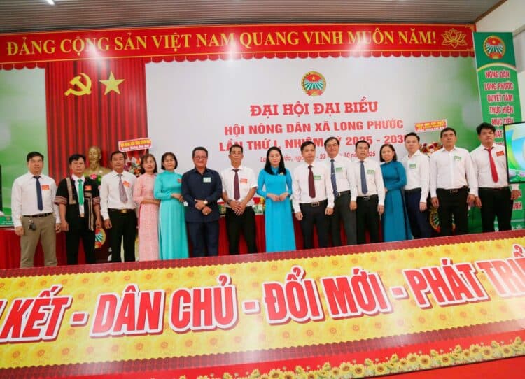 (TVPLVNO) – Ngày 23/10/2025, hoà trong không khí thi đua sôi nổi của toàn tỉnh Đồng Nai hướng về các ngày lễ lớn của đất nước, Hội Nông dân xã Long Phước đã tổ chức Đại hội đại biểu Hội Nông dân xã Long Phước (tỉnh Đồng Nai) lần thứ I, nhiệm kỳ 2025–2030. Tham dự Đại hội có Đ/c Nguyễn Huy Hoàng – Ủy viên Ban Thường vụ Hội Nông dân tỉnh, Phó Ban Công tác Hội Nông dân tỉnh; Đ/c Dương Thị Mỹ Châu – Bí thư Đảng ủy, Chủ tịch HĐND xã; Đ/c Dương Thúc Minh – Phó Bí thư Thường trực Đảng ủy xã; Đ/c Trần Văn Thân – Phó Bí thư Đảng ủy, Chủ tịch UBND xã; Đ/c Đỗ Chánh Huy – Ủy viên Ban Thường vụ Đảng ủy, Chủ tịch Ủy ban MTTQVN xã; cùng lãnh đạo Đảng ủy – HĐND – UBND – Ủy ban MTTQ xã Long Phước, 95/95 đại biểu chính thức đại diện cho 1.255 hội viên Hội Nông dân tiêu biểu đến từ các chi hội trên toàn xã Long Phước.