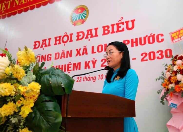 Phát biểu chỉ đạo tại hội nghị, Đ/c Dương Thị Mỹ Châu , Bí thư Thư Đảng Ủy – Chủ tịch HĐND Xã Long Phước đánh giá cao sự đóng góp của tổ chức Hội Nông dân trong việc thực hiện thắng lợi các mục tiêu phát triển kinh tế – xã hội của địa phương. “Không chỉ là lực lượng sản xuất nòng cốt, Hội Nông dân còn là tổ chức giữ vai trò đặc biệt trong việc giáo dục tư tưởng, vận động người dân sống tốt, làm kinh tế giỏi, xây dựng đời sống văn hóa ở khu dân cư. Chúng ta phát triển nông nghiệp không chỉ để làm giàu, mà còn để phát triển con người – những người nông dân hiện đại, có tri thức, có kỹ năng, có trách nhiệm với cộng đồng.” Đồng thời, khẳng định Đảng ủy xã sẽ tiếp tục quan tâm lãnh đạo, tạo điều kiện thuận lợi để Hội Nông dân hoạt động hiệu quả hơn, góp phần cùng chính quyền thực hiện thắng lợi chương trình xây dựng nông thôn mới nâng cao và nông thôn mới kiểu mẫu giai đoạn 2025–2030.