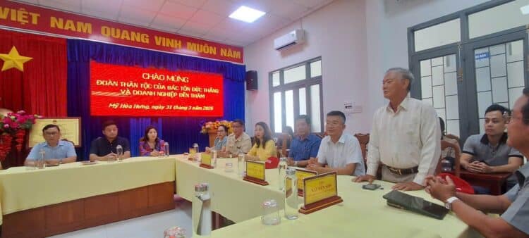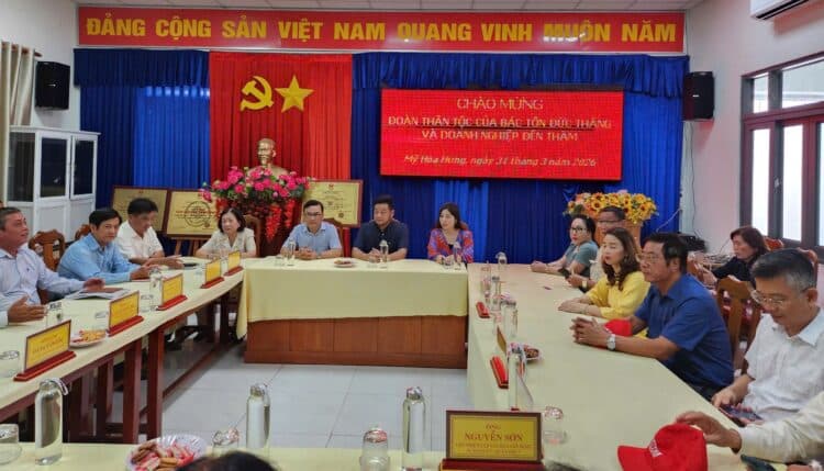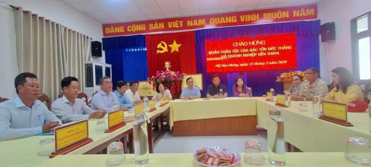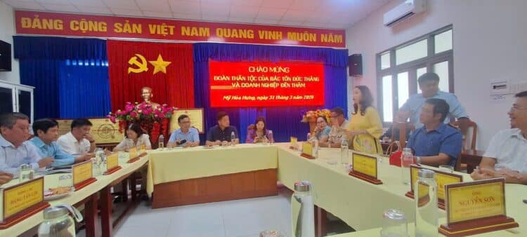 (TVPLVNO) – Trong khuôn khổ chuyến công tác về nguồn nhân kỷ niệm 46 năm Ngày mất Chủ tịch Tôn Đức Thắng. Chiều ngày 31/3, Đoàn Doanh nhân Sài Gòn và Hội đồng họ Mai tại TP.HCM đã có buổi thăm, tìm hiểu về nét đẹp văn hoá dân tộc từ “Đám giỗ – nét đẹp văn hoá Nam Bộ”, qua đó phát huy nội lực và lan tỏa tinh thần nghĩa tình quê hương cù lao Mỹ Hoà Hưng quê hương của Chủ tịch Tôn Đức Thắng.