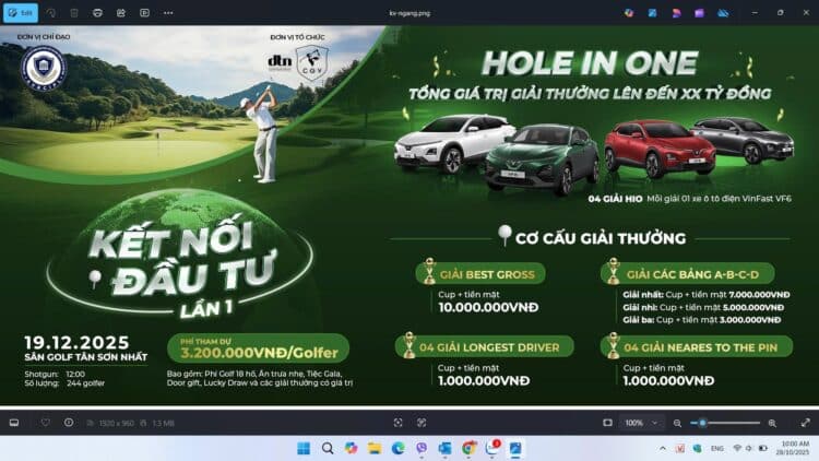 Giải Golf “Kết nối đầu tư” lần thứ I – 2025, dự kiến sẽ thu hút hơn 240 golfer tham gia. Đây không chỉ là sân chơi thể thao chuyên nghiệp mà còn là cơ hội để doanh nghiệp trên cả nước, giới đầu tư nước ngoài vào Việt Nam và các hội viên Hiệp hội có cơ hội kết nối giao thương, mở rộng quan hệ hợp tác lần nhau…